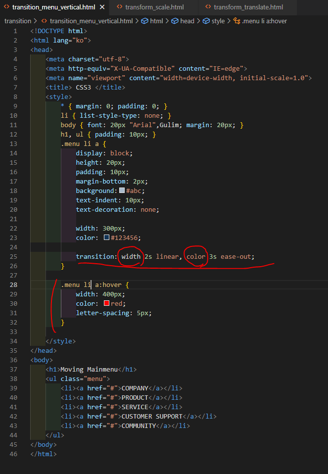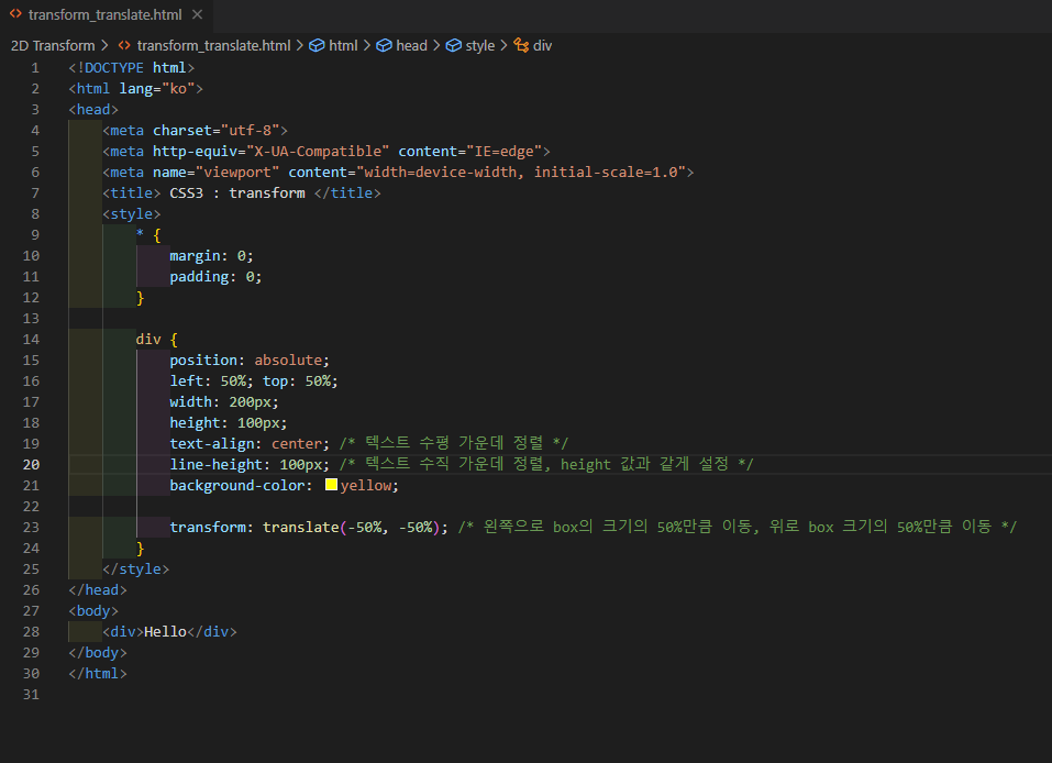 - transform:translate(20px, -30px); /*우측으로 20px, 위로 30px 이동*/